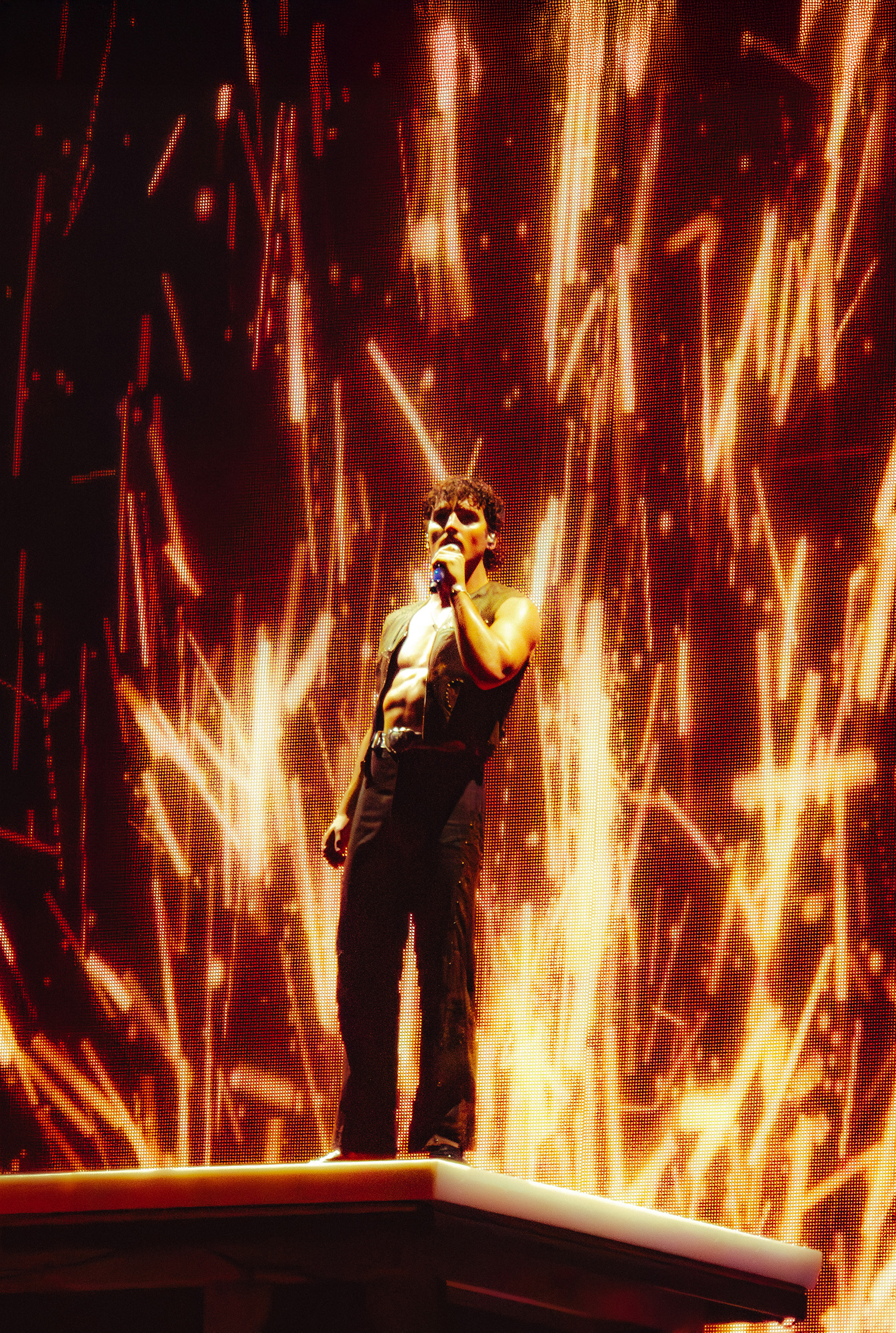 A night with eight (ish) backflips, two stylish outfits, countless sprints up and down his heart-shaped stage, and his biggest hits from a floating chandelier.