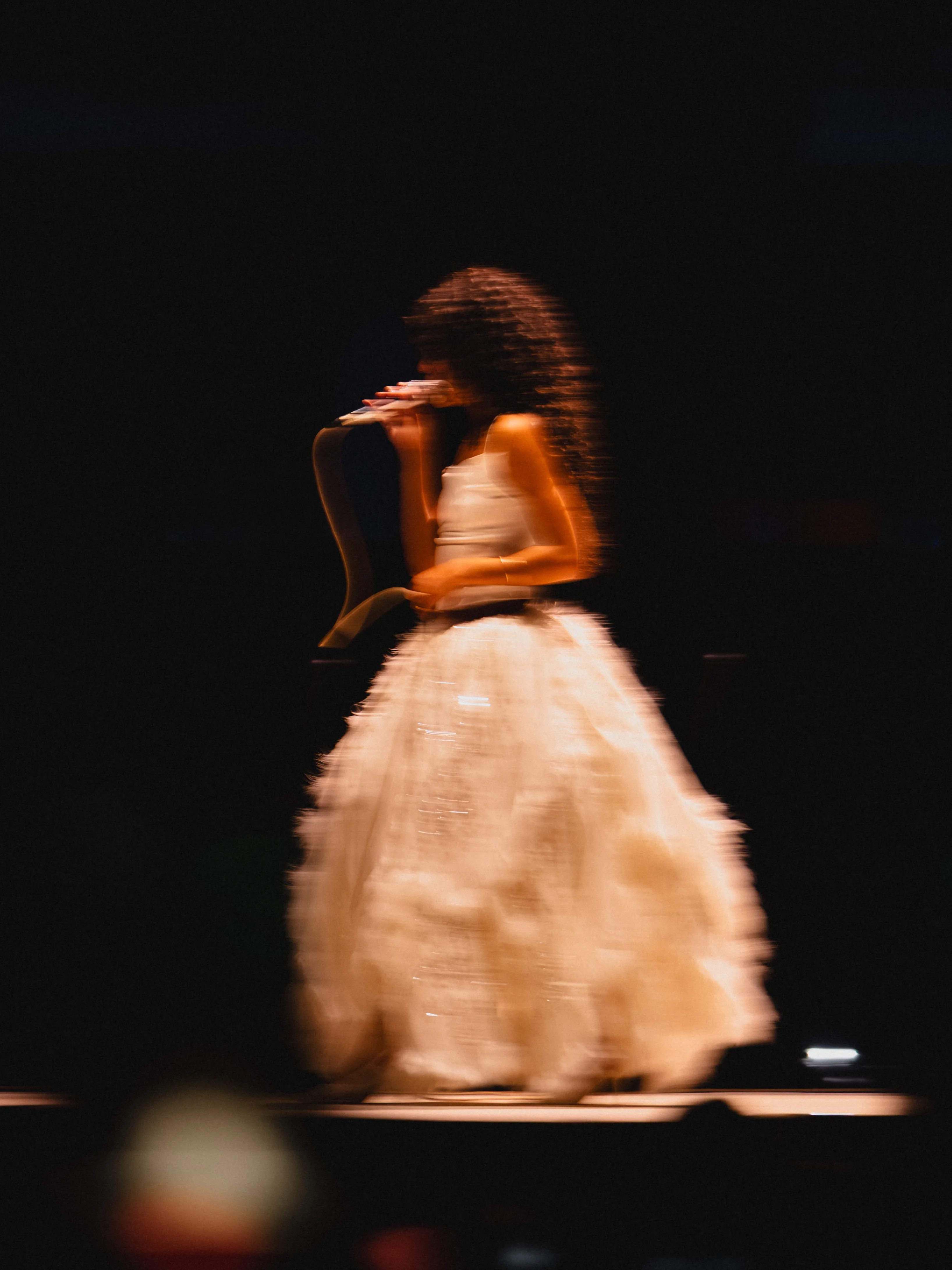 Back to the main stage, and a sudden shift to the disco segment of the show, with silver glitterballs reflecting across the stage and entire room, as did Dean’s third outfit of the night: a black, silver and gold sequin dress. Two fan favourites of the night were Baby Steps and Ladies Room, which slotted in perfectly with the more upbeat tracks of her discography, where she seemed to be at a state of ease on stage.