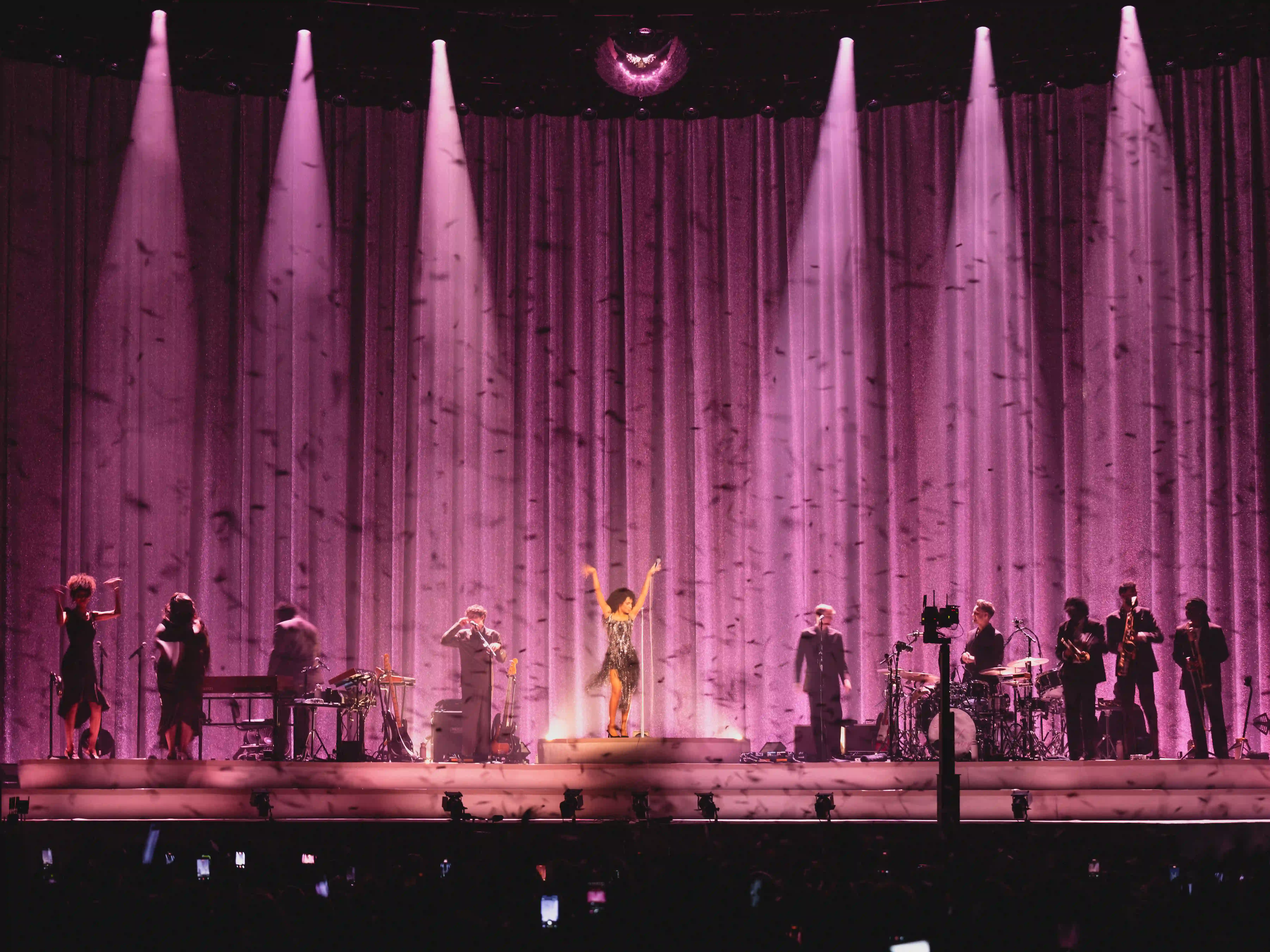 A brief interlude followed, including an impressive turnaround from the crew and a man hoovering the cream carpet who got some cheers from attendees. The atmosphere in the room heightened as the lights began to fade and the silhouette of Olivia Dean pierced through the cream curtains. The set in itself radiated grandeur and elegance, transporting you to something reminiscent of a retro theatre. As the curtains began to open, after The Art of Loving (intro), the singer was already beaming with a smile from ear to ear, her band and backing vocalists in full swing.