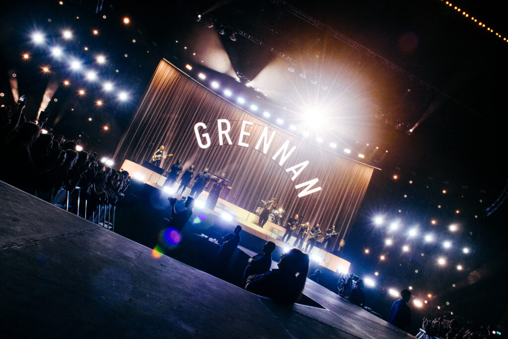 And before you knew it, the lights went down, the curtain was lifted, and Tom Grennan appeared on stage. The stage had a cool 80s vibe to it with each band member set up across the stage, and with ‘GRENNAN’ illuminating the background in big bright letters.