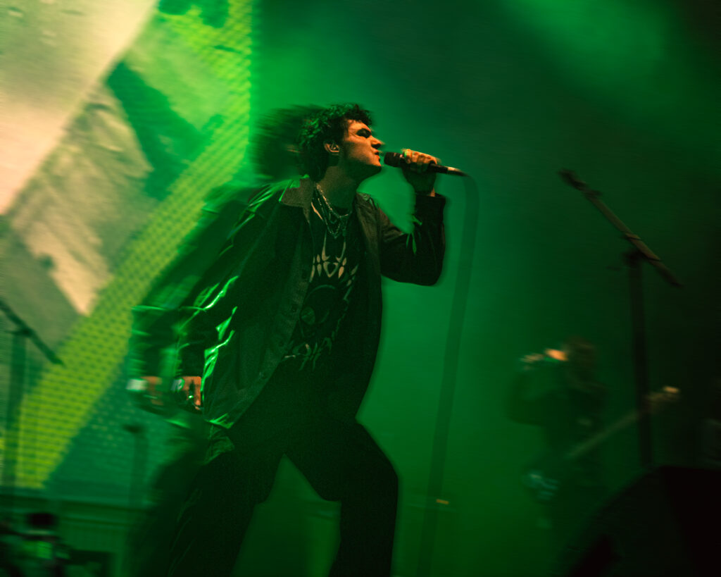 Returning from the dead (see what I did there) in Manchester for one night only was the British band Working Men’s Club, whose blend of synth-pop and post-punk captivated us in a chokehold with no signs of release. What’s crazy to me is I photographed these guys back in 2019 at Confessional Festival, and yet as I stood watching their set, the only thing I could think of was how far they had changed. Don’t get me wrong, I liked them before, but this set I loved.