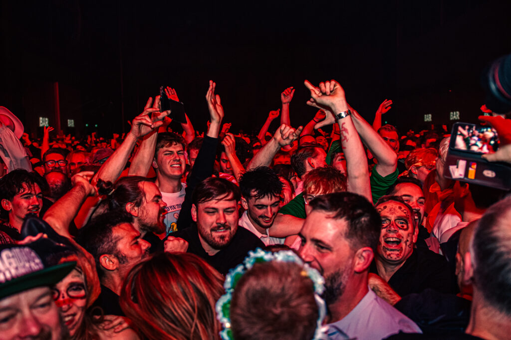 Were things about to slow down? Not a chance! The favourite, King Of The Slugs, was about to begin. At that point, I had made my way back into the crowd. I wanted to experience this gig in the pits. None of the band was holding back, from the gritty bass line to the slicing of the violin, we all screamed “KING OF THE SLUGS” till our voices ached, waiting for that inevitable drop to arrive. Then lead singer Joe Love began chanting “The Wall”; it was time. The countdown was on. The lyrics slowed, and the crowd became louder. Just like at the start, the crowd was ready for another eruption. To the beat of the drum, hands were clapped, and the chanting of “The Wall” became deafening. For a second, everything went silent, and the saxophone entered. The pits soon flooded with bodies, and the rave had begun.